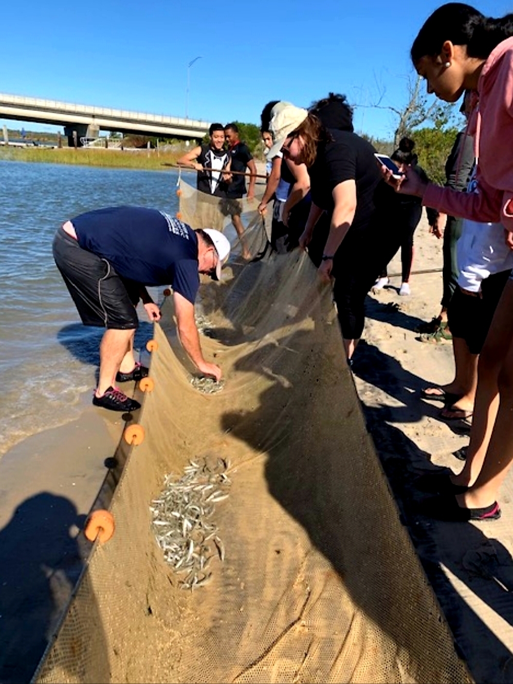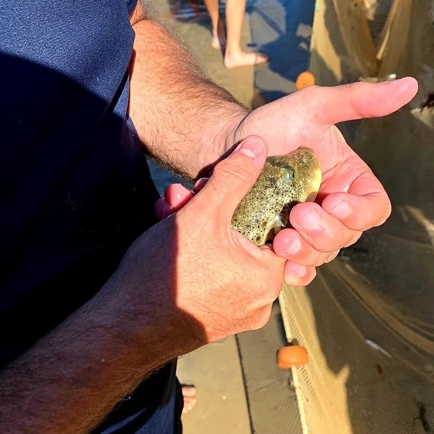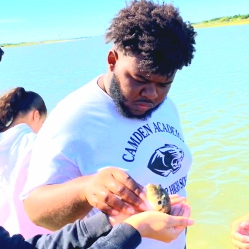 Camden Academy AP Environmental science students visited Corson's Inlet w/Center for Aquatic Sciences to learn about tidal species and the importance of barrier islands. They used a refractometer to test the water salinity (it was ~35 parts per thousand). They tasted sea lettuce and learned about different types of sea plants, barnacles, fish, and crabs. The photos show fish, crab, and shrimp specimens they found including two puffer fish. For many students, this was the first time they saw these specimens. All items found, were returned to the ocean unharmed.